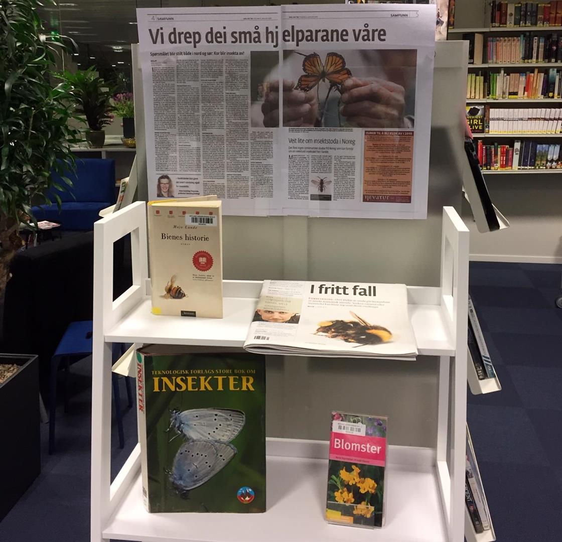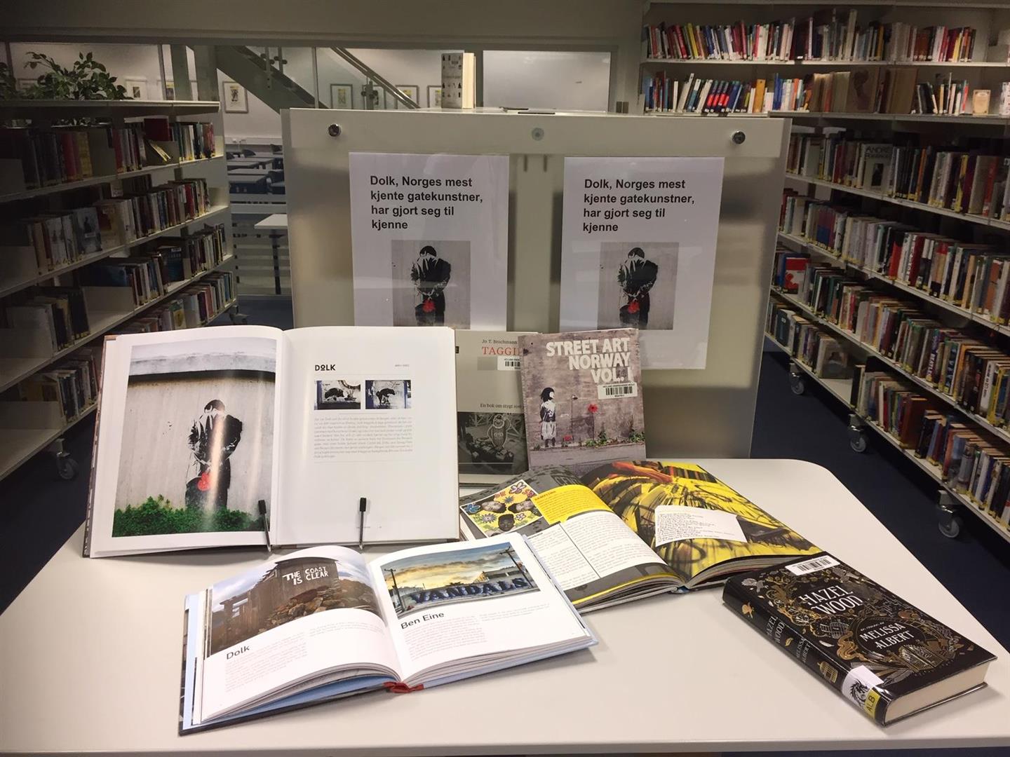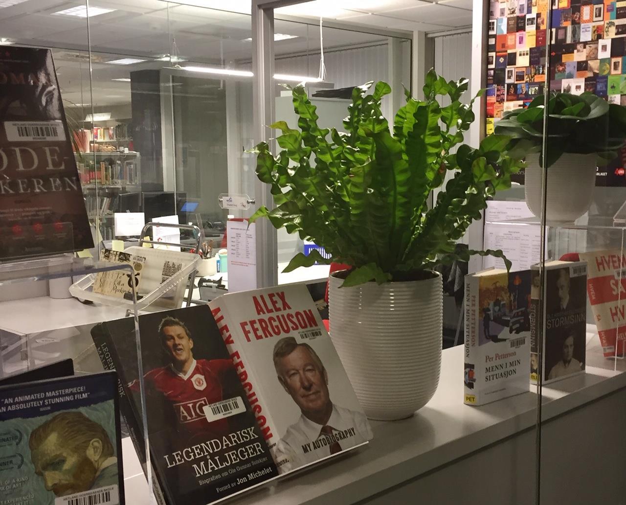 Biblioteket på Hetland er synlig og sentralt plassert midt i bygget, og de flotte bokutstillingene bibliotekaren lager frister nok også mange til å låne med en ekstra bok hjem i helgen. Her er noen tilfeldige inntrykk fra biblioteket da vi var innom i formiddag.